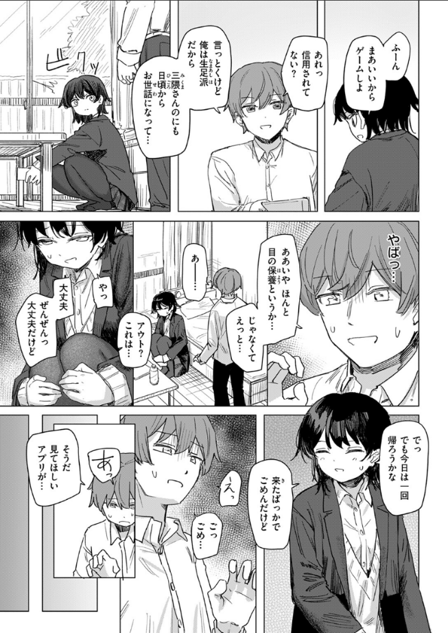 ――三隈(みくま)さんは大事な友達…だから…基本的にノリがいいけど、性的な気配がするとすぐに引いてしまう女友達・三隈さん。ぶっちゃけ好きだし付き合いたいけど、放課後家で一緒にゲームするような幸せな関係を壊したくもない。だが、会話の流れ口にした下ネタで地雷を踏んでしまい、焦った俺は《怪しいアプリ》を彼女に使用した。《俺に対する許容量を超えたエロを正常に認識でない》状態になった三隈さんを、俺は――